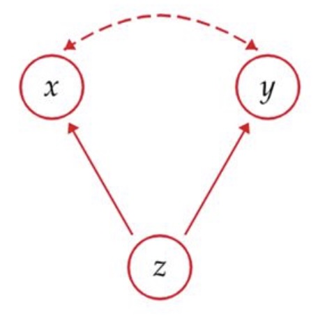 In a situation such as this, variable z is called a lurking variable. This is a variable that is affecting our study that we are not accounting for when examining the relationship between X and Y.