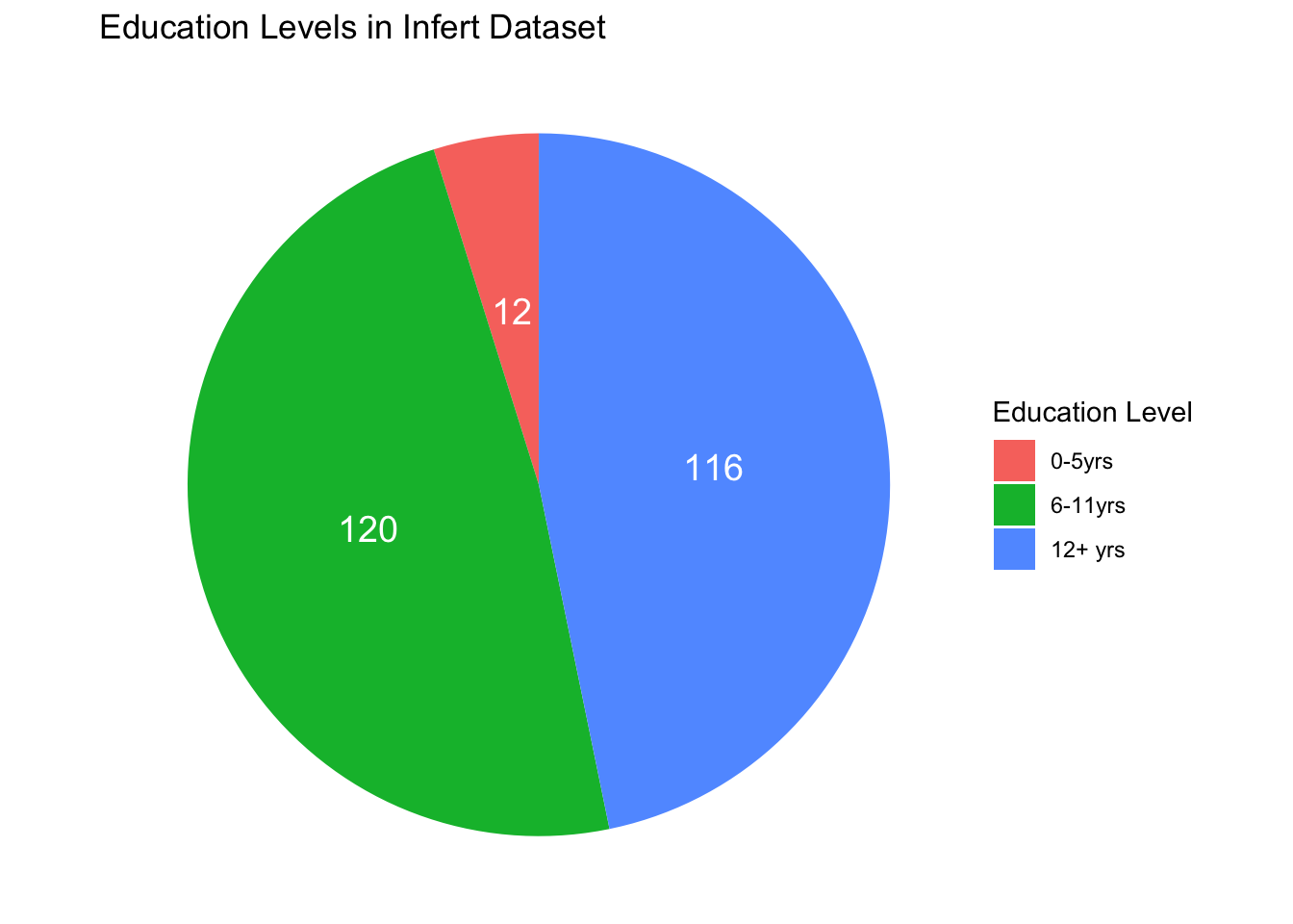 Problem 10: Pie Chart of Education Levels in the infert Dataset