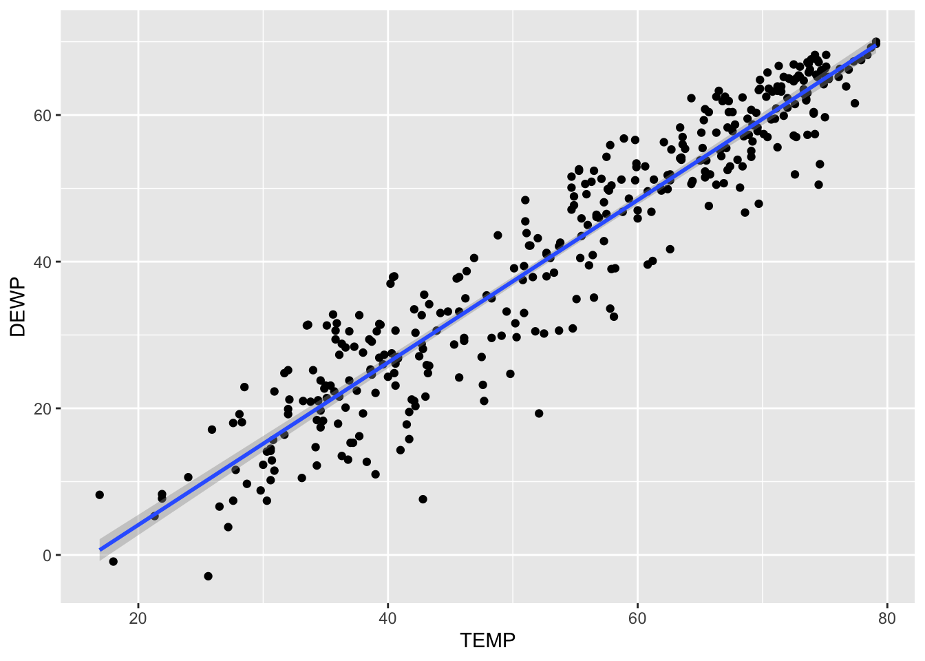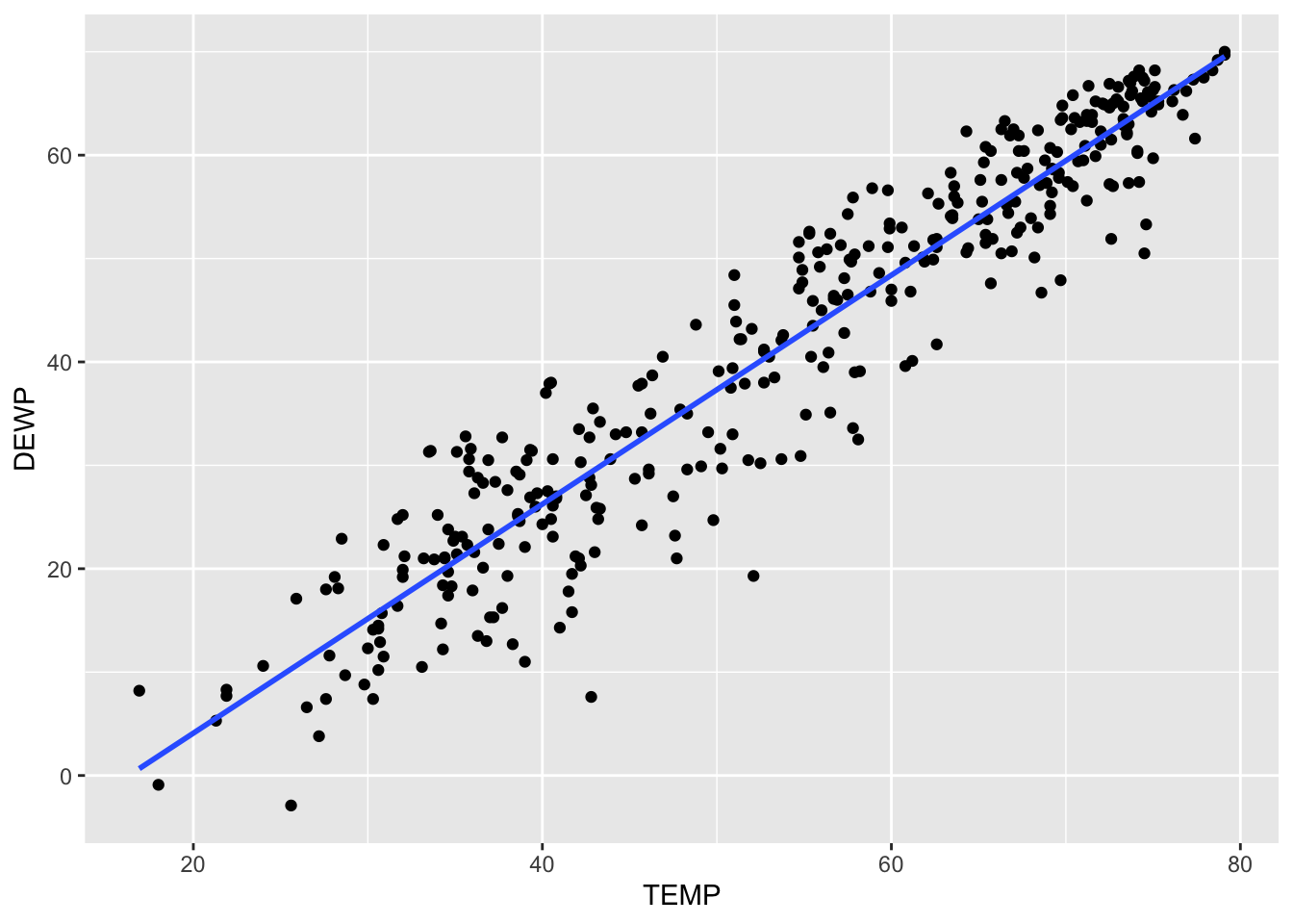 cor(SVA$TEMP, SVA$DEWP)[1] 0.9511601