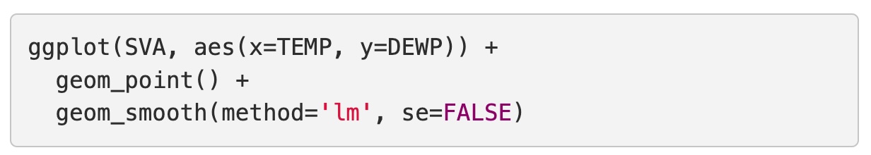 ggplot(SVA, aes(x=TEMP, y=DEWP)) +
