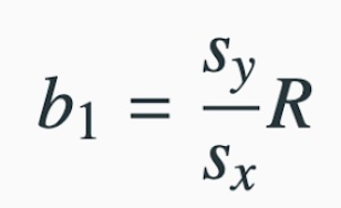 Our next step then would be to consider how to calculate the slope of the model. While in practice we will not calculate these by hand, it is worth seeing these formulas so we can better understand them and interpret them. The slope of the regression line \(b_1\) can be calculated as follows :