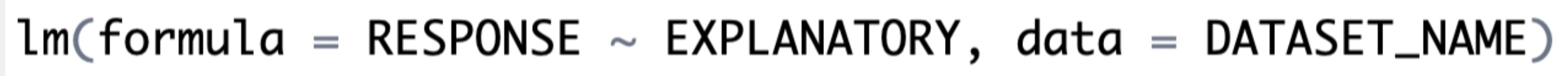 There are a couple of ways we can denote the explanatory and response variables. We could give the lm( ) command the name of the data set and the short names for the vairables, or we could just give the fullname for the variables. In this example, we could use either one of the following two methods :