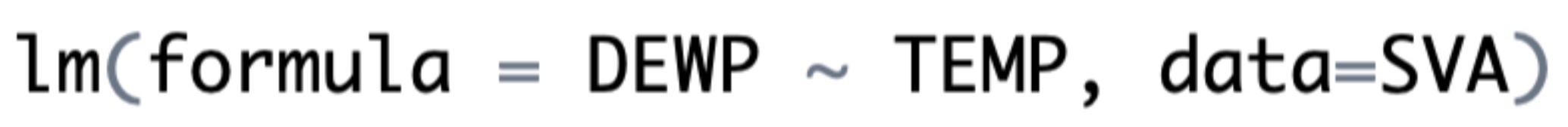 lm(formula = SVA$DEWP ~ SVA$TEMP)