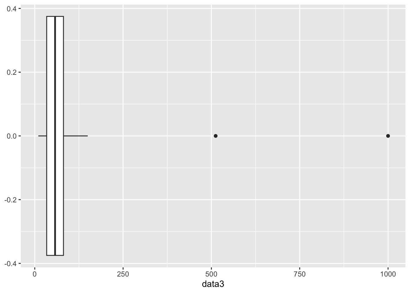 The output for the range command gives us the lowest and the highest value in the dataset. The range of data1 is \(5-5=0\), which is expected because all of the values in data1 are the same. The output for the range of data2 is \(10-0=10\), which is expected because the largest value in data2 is 10 and the smallest value is 0.