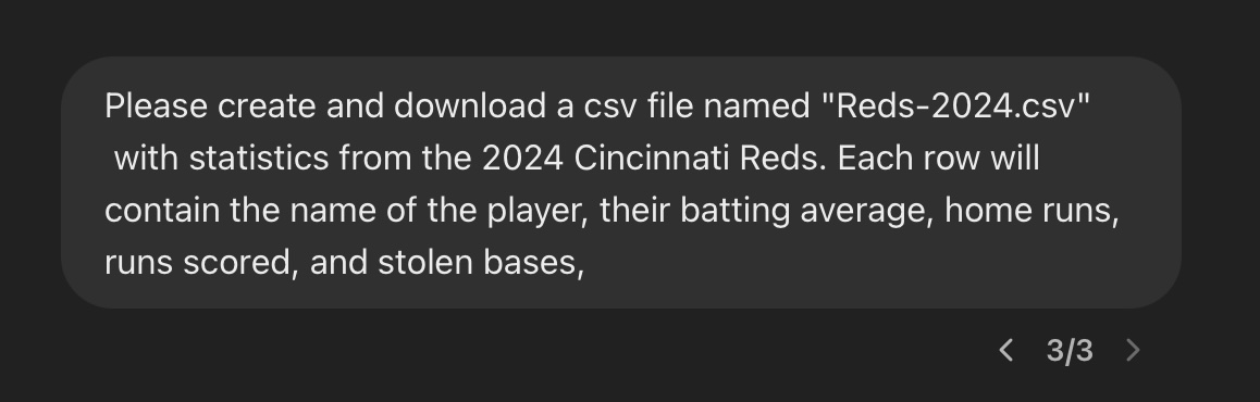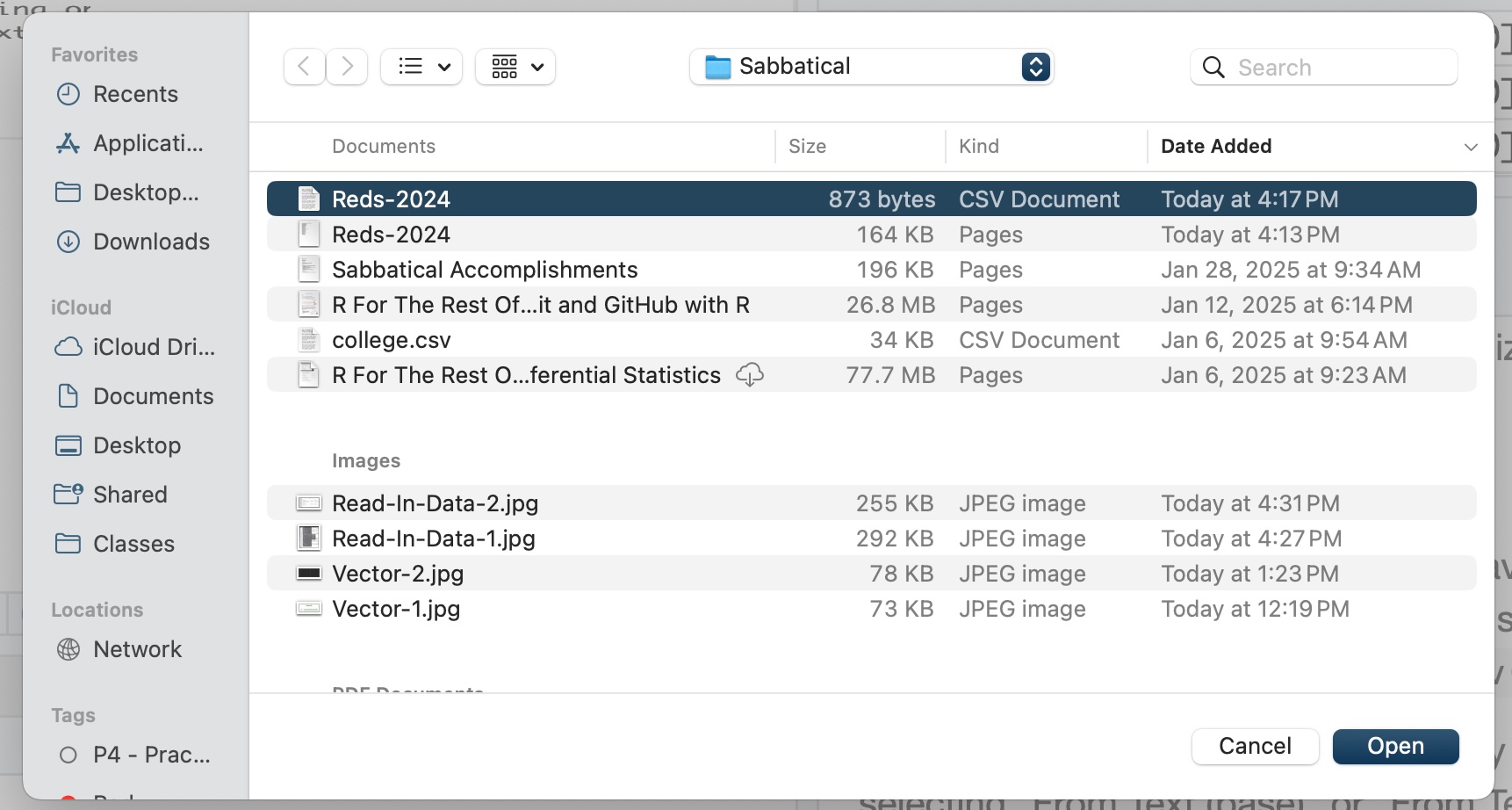 This gave me a new dialog and I clicked on the file Reds-2024. Notice that I picked the CSV version and not the Pages version!