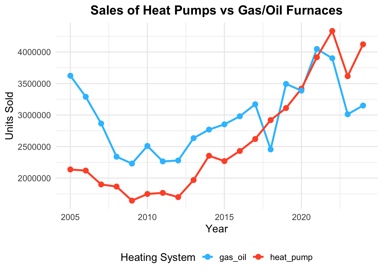 labs(title = "Sales of Heat Pumps vs Gas/Oil Furnaces",