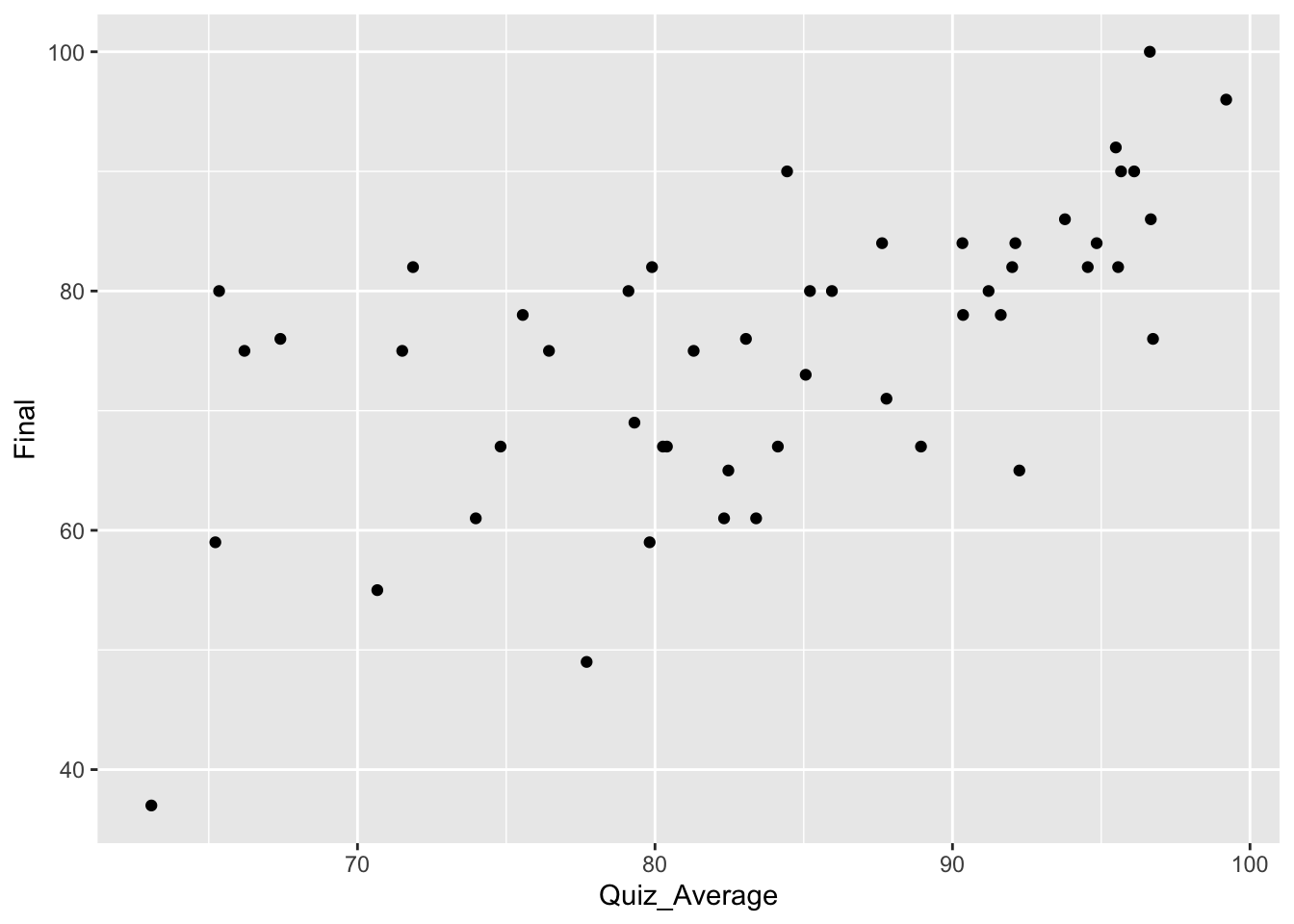 ggplot(grades, aes(x = Quiz_Average, y = Final)) +geom_point( )