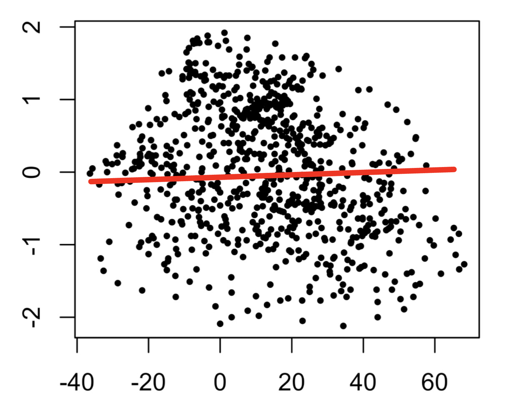 Strength : The data follows no linear pattern at all, so we would say this scatterplot has no strength.