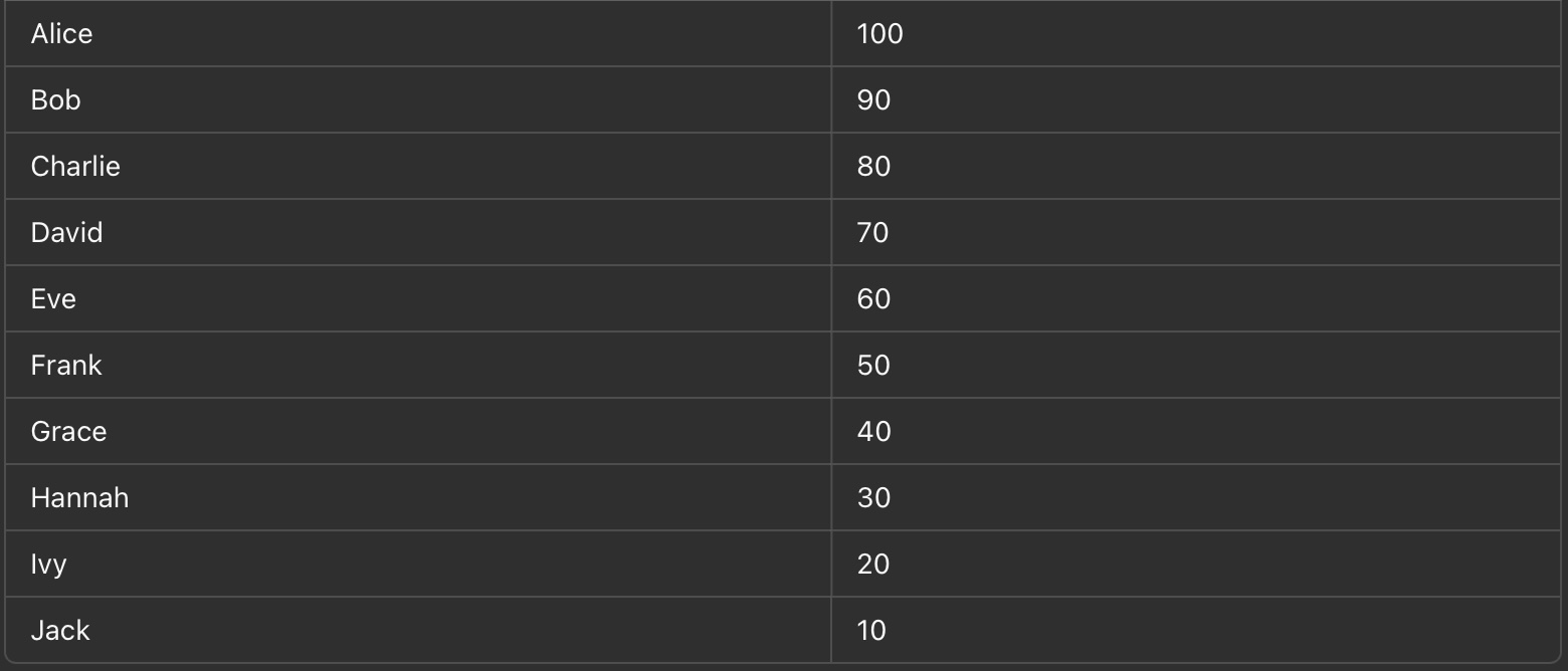 name = c("Alice", "Bob", "Charlie", "David", "Eve", "Frank", "Grace", "Hannah", "Ivy", "Jack"),